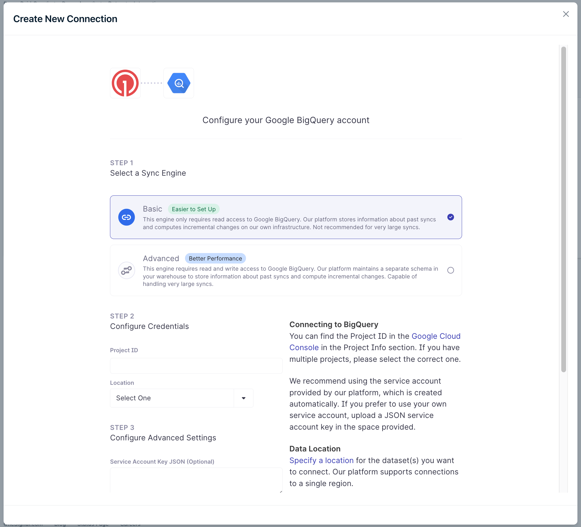 - Sync Engine: Advanced sync is recommended for large datasets or complex event data queries. You can start with basic sync and switch to advanced sync later if needed.