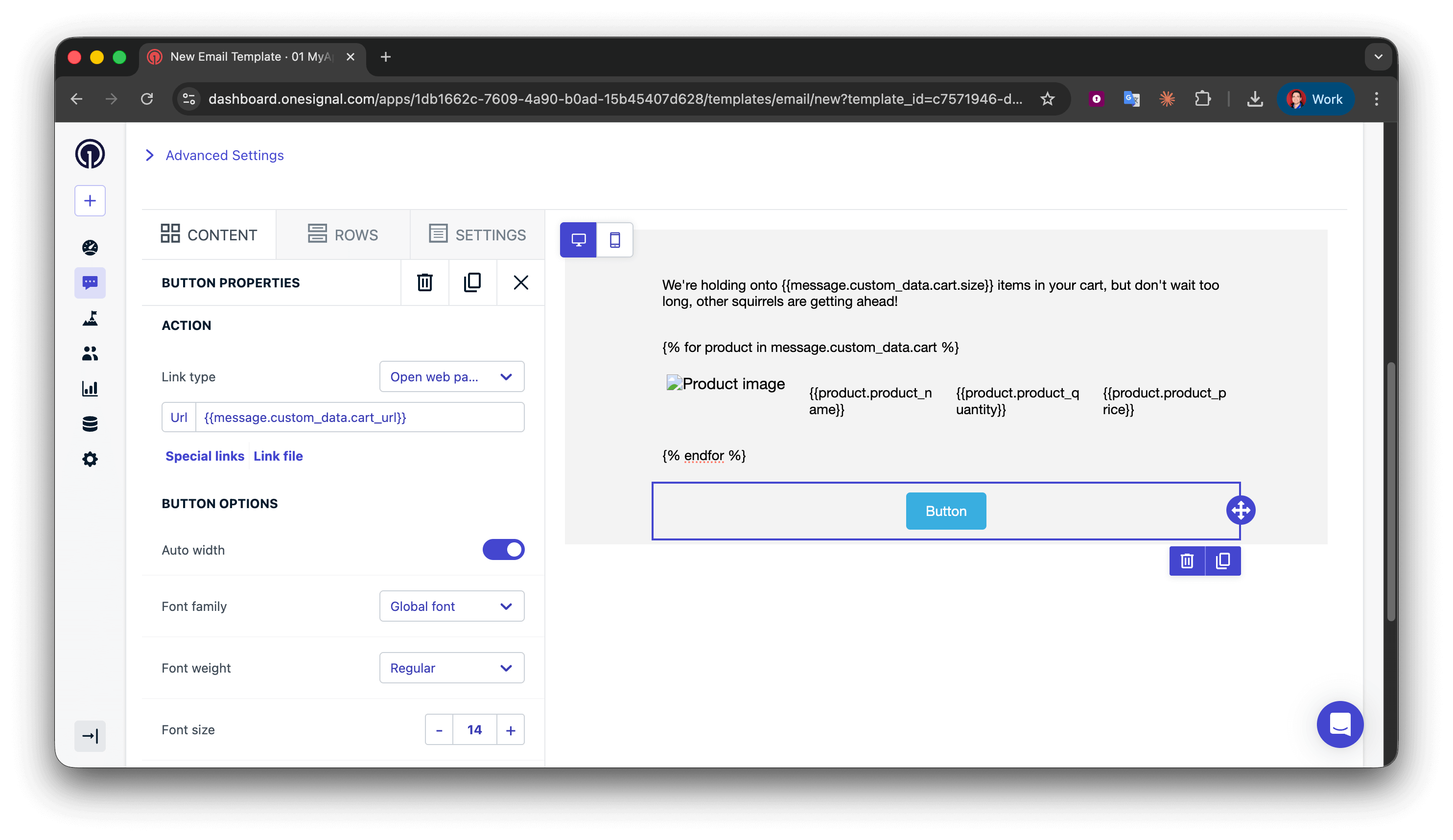 subscription.external_idto look up the current recipient’s data - OneSignal renders the template once per recipient with their specific data