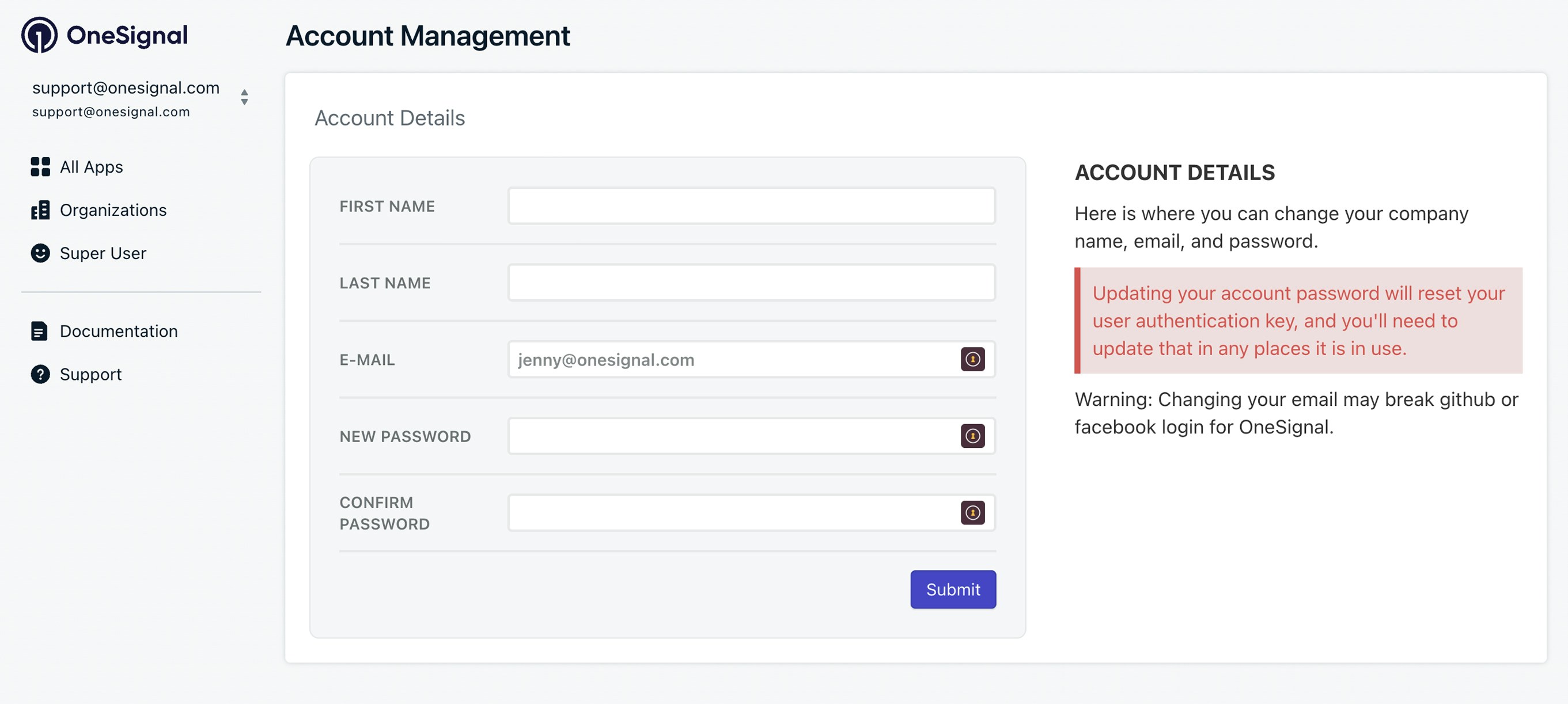 Si votre entreprise possède déjà une application ou une organisation OneSignal, envoyez un e-mail à l’administrateur du compte pour demander une invitation. Partagez le guide Gérer les membres de l’équipe pour les aider à vous donner accès plus rapidement 😉.