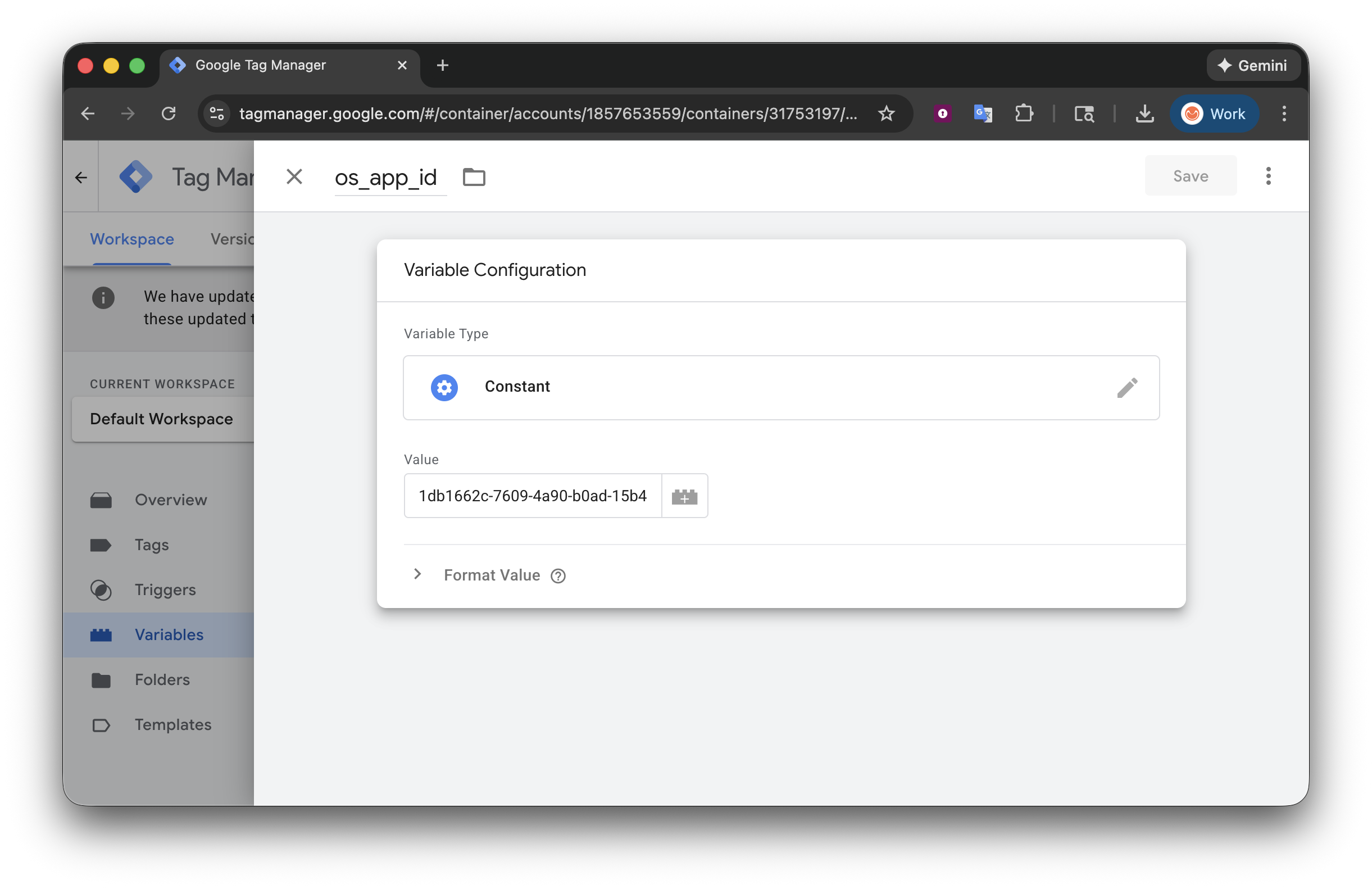 Création d'une variable OneSignal App ID