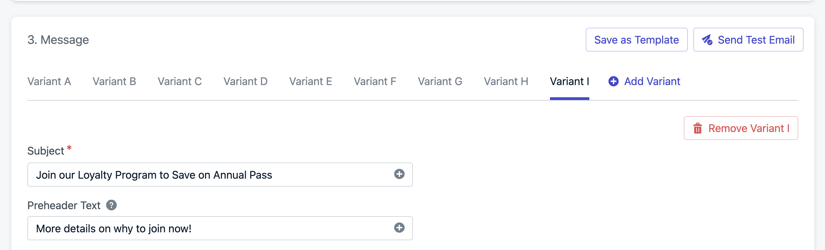 아직은 아닙니다. 우승 변형을 수동으로 선택하거나 100%를 사용하여 모든 변형을 전송해야 합니다.완료되었습니다! 이제 메시지의 다양한 변형을 테스트하고 우승자를 선택할 수 있습니다.
