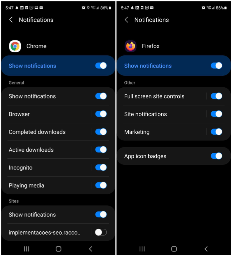 모바일 브라우저 앱이 데이터 한도에 도달했거나 데이터가 가득 찬 경우 앱의 데이터를 지워야 합니다. 모바일 브라우저 앱에 읽지 않은 푸시 알림이 많거나 열려 있는 탭이 많으면 알림이 표시되지 않을 수 있습니다.지원되지 않는 브라우저