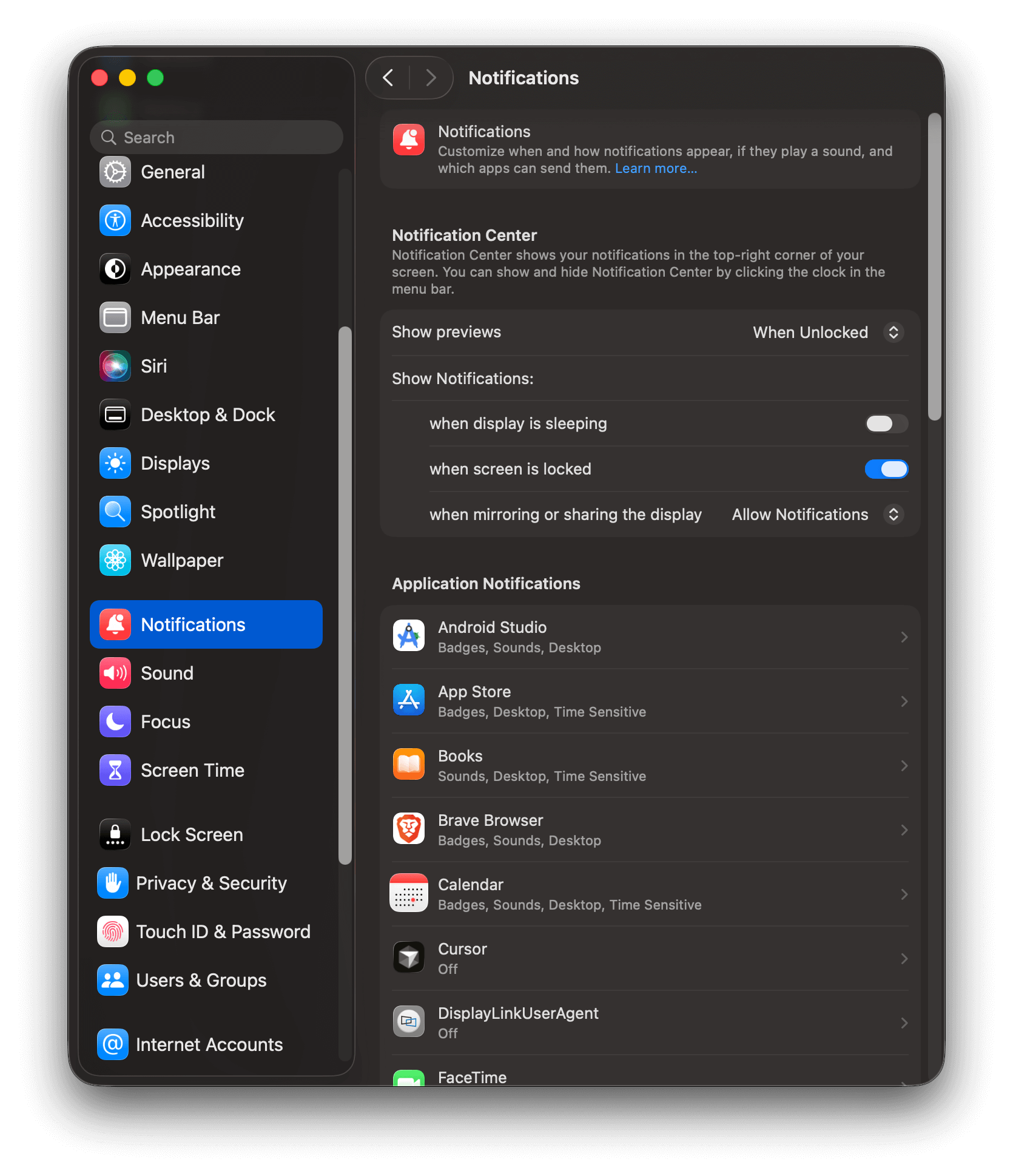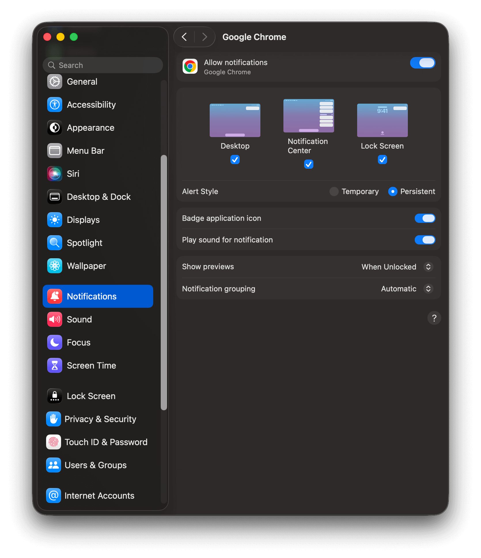 - Windows 또는 macOS Notification Settings의 스크린샷