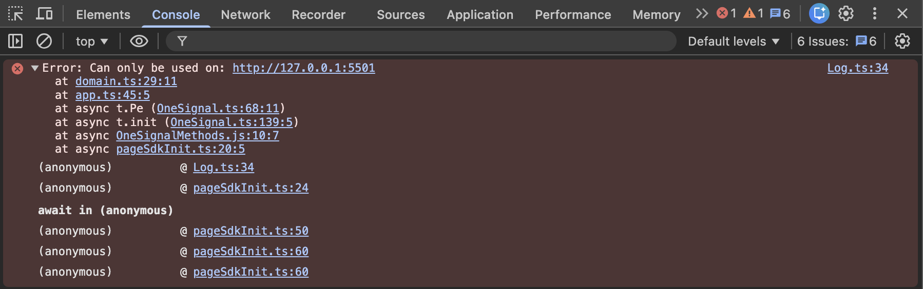 오류: Can only be used on: (OneSignal 대시보드에 설정된 URL)