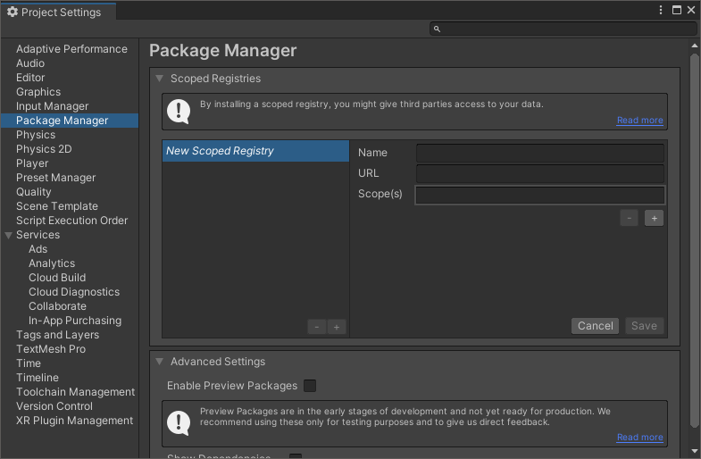 - Unity Package Manager